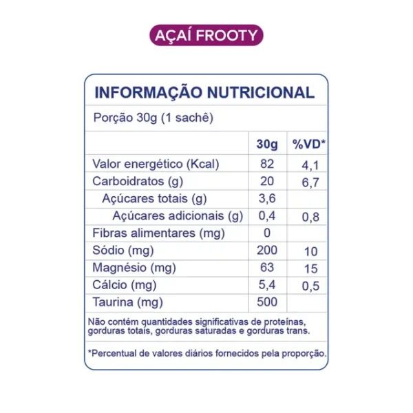 Água, beterraba em pó, xarope de maçã, maltodextrina de milho, glicose de milho, limão em pó, guaraná em pó, cloreto de sódio, taurina, amora em pó, morango em pó, framboesa em pó, bisglicinato de magnésio, acerola em pó, água de coco em pó, acidulante ácido cítrico, aroma natural de frutas vermelhas, edulcorante stévia, conservadores benzoato de sódio e sorbato de potássio e antioxidante EDTA cálcio dissódico.