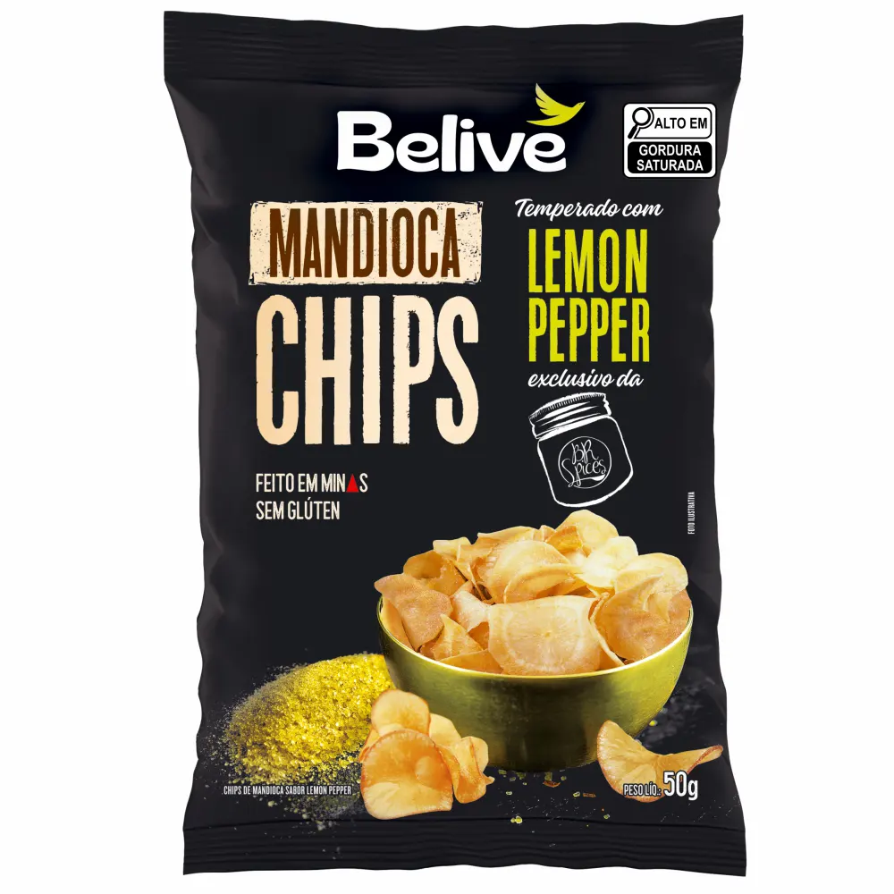 CHIPS DE MANDIOCA SEM GLÚTEN TEMPERADOS COM LEMON PEPPER 100% NATURAL – BELIVE